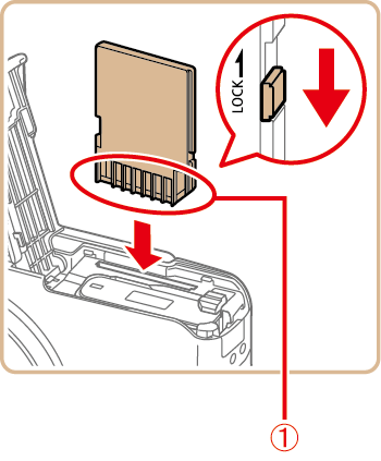 - 使用具有写保护滑块的存储卡时,如果该滑块位于锁定位置,则无法进行记录。请将该开关滑到解锁位置