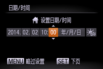 - 如果未设置日期、时间和本地时区,则每次打开相机电源时,都会显示 [日期/时间] 屏幕。指定正确的信息。