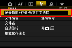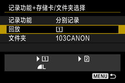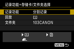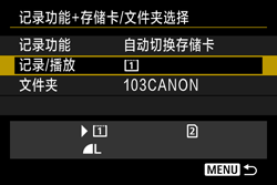 ] 转盘选择 [记录功能+存储卡/文件夹选择],然后按下 [
