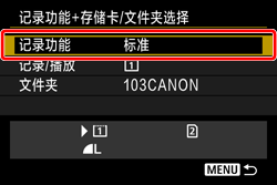- 标准:图像将被记录到用 [记录/播放] 选定的存储卡上。