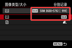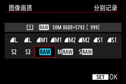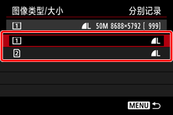 - 分别记录:可以为各存储卡设定图像记录画质。以您设定的图像记录画质将各图像分别记录到 CF 和 SD 卡。可以自由地将图像记录画质设为