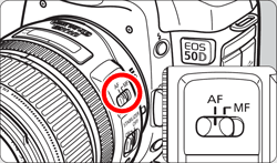 将镜头对焦模式开关设为 <AF>。