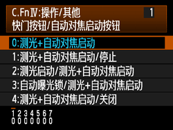 2.[快门按钮/AF-ON 按钮(编号1)] 屏幕将出现,选择 [0: 测光 + 自动对焦启动]。
