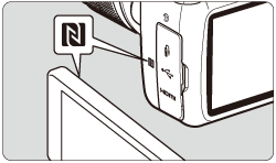 ] 时,无法使用 NFC 功能建立连接。 - 将智能手机与相机接触时,请不要让相机和智能手机之间隔有任何物品。此外,当相机或智能手机上安装有外壳时,可能无法经由 NFC 功能通信。
