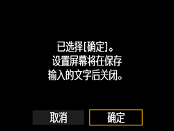 | 取消文本输入 | 按 < DISP. > 按钮取消文本输入并退出。如果显示确认对话框,则选择 [确定] 以退出。 |