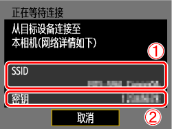 )。 - 有关密码,请输入相机的液晶监视器上显示的密钥 (
