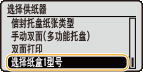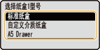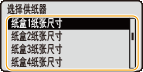 选择 <纸盒1纸张尺寸> 至 <纸盒5纸张尺寸> 之一,然后按