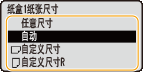 - <自动> 更改为其他纸张尺寸设置后,当使用标准尺寸纸张时,将设置设回 <自动>。