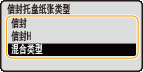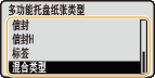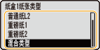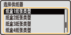 - 当安装了进纸器或纸仓时,将显示 <纸盒2纸张类型> 至 <纸盒5纸张类型>。