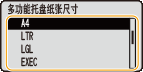 - 当安装了选购进纸器或纸仓时,将显示 <纸盒2纸张尺寸> 至 <纸盒5纸张尺寸>。