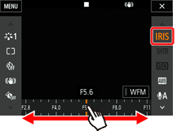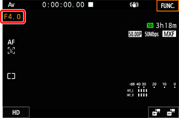 - 根据被摄体的亮度,摄像机无法控制曝光,光圈值将闪烁。在这种情况下,请选择其他光圈值。