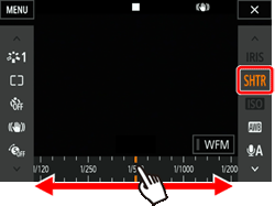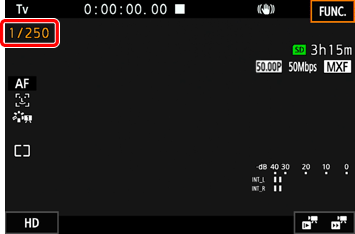 - 根据被摄体的亮度,摄像机无法控制曝光,快门速度值将闪烁。在这种情况下,请选择其他快门速度。