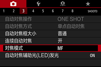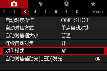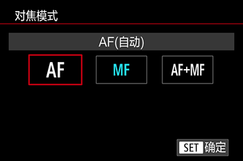 - 在连接了 EF-M 镜头后,将会显示 [对焦模式]。在连接了 EF 或 EF-S 镜头后,将不会显示它。