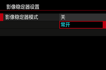 | 常开 | 使用镜头的内置影像稳定器,校正相机移动或相机抖动。 |