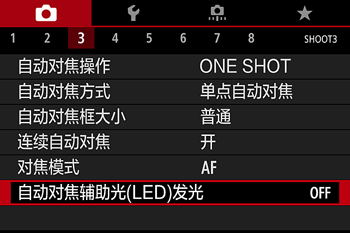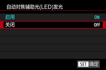 ] 转盘选择 [自动对焦辅助光(LED)发光],然后按 [