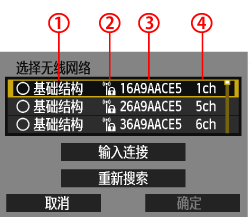 - 如果显示多台相机,请通过相机的液晶显示屏上显示的 MAC 地址识别要连接的相机。