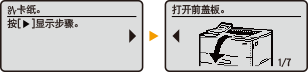 - 打开和关闭前盖板时,卡纸消息消失。