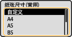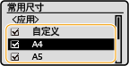 - 未选择的纸张尺寸可以通过在纸张尺寸设置选择画面中选择<其他尺寸>来查看。