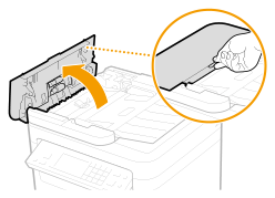 - 确保输稿器完全关闭。如果在稿台玻璃上放置图书等较厚原稿,请取下原稿。强行抬起操作面板可能导致损坏。