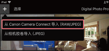 ] 点击 [从 Canon Camera Connect 导入 (RAW/JPEG)]。