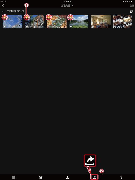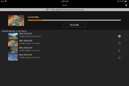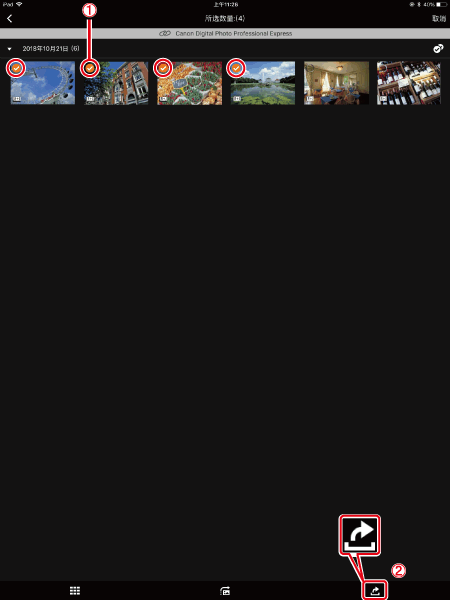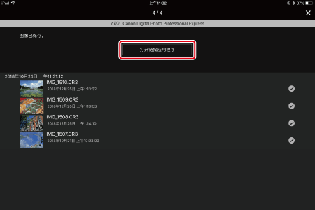 - 如果需要在 Digital Photo Professional Express 外使用导入到 Digital Photo Professional Express 的图像,建议将这些图像保存到存储卡或 iPad 以外的其他位置。
