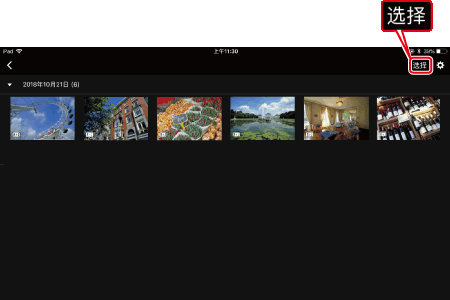 在通过 Wi-Fi 连接相机和 iPad 时,相机上的图像可以导入到 iPad 并且显示在 Photo Professional Express 中。用于导入图像的两种方法如下所示。