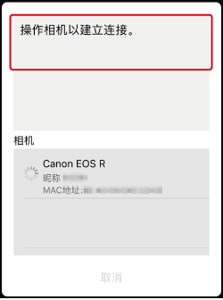 28. 确认显示 [ 操作相机以建立连接 ]。